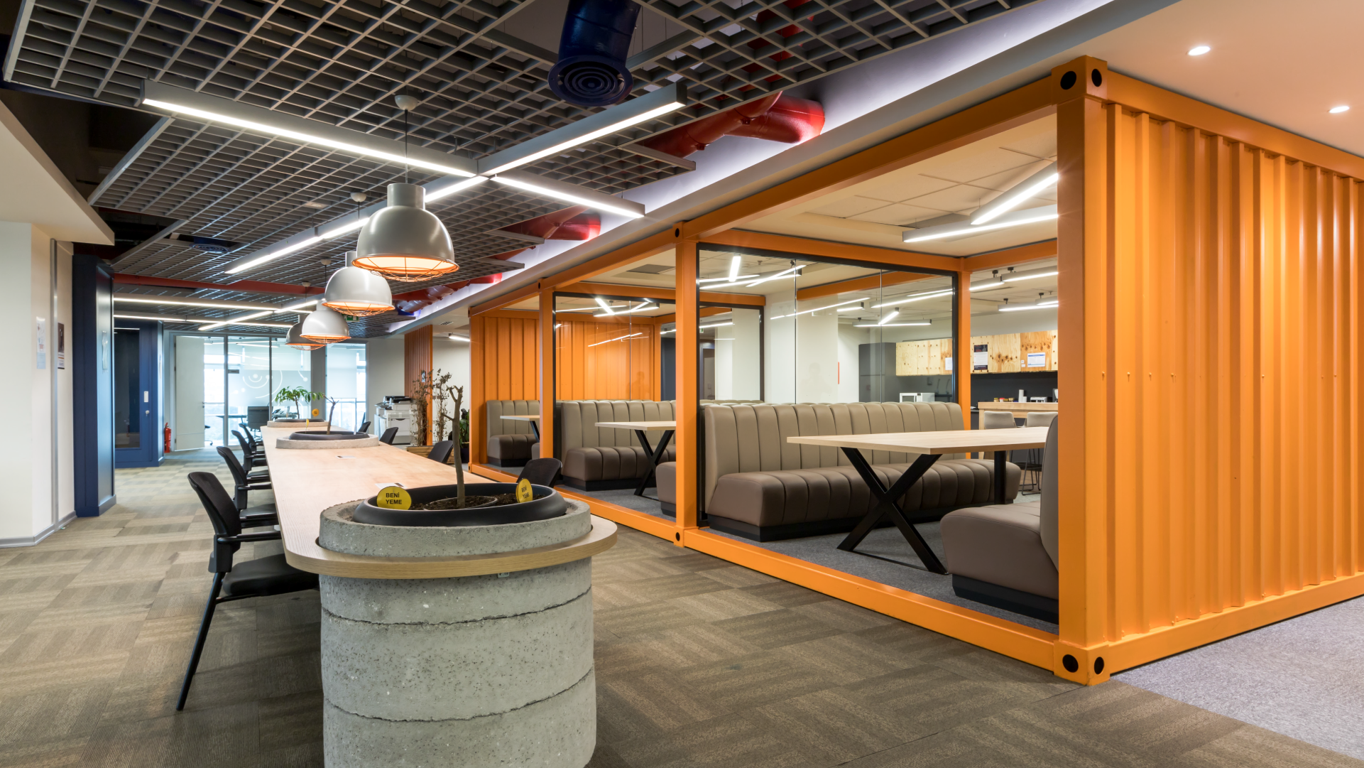 General Electric ofis projesi, modern iş yaşamının ihtiyaçlarını karşılayacak şekilde esnek, dinamik ve ilham verici bir ortam yaratmak amacıyla tasarlandı. Açık ofis düzeni, kapsayıcı toplantı alanları, rahat sosyal bölümler ve yaratıcı çalışma köşeleri, çalışanların iş birliğini ve verimliliğini desteklerken, mekâna özgün bir karakter kazandırıyor. Endüstriyel tavan detayları, canlı renk blokları ve ahşap dokular, güçlü bir kurumsal kimlik ile sıcak bir atmosferi bir araya getiriyor. Aydınlatma kurgusu, hem çalışma odaklı hem de sosyal alanlarda konforu artıracak şekilde planlanırken; özel oturma üniteleri ve akustik çözümler, mahremiyet ile açıklık arasında dengeli bir deneyim sunuyor. Bu proje, hem işlevselliği hem de estetiği ön planda tutarak çalışanların motivasyonunu yükselten bir çalışma ortamı oluşturuyor.