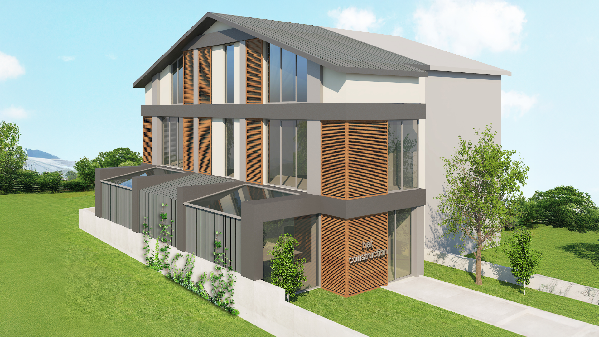 Hat Construction için tasarlanan proje, ahşap dokular ve cam yüzeylerin modern bir yorumunu sunuyor. Doğal ışığı, fonksiyonelliği ve estetik dengeyi bir araya getirerek zamansız bir mimari ortaya koyuyor.