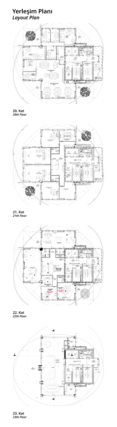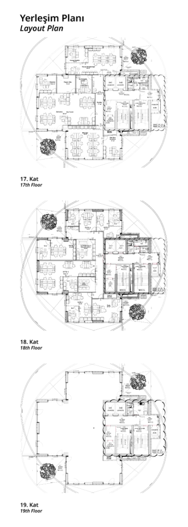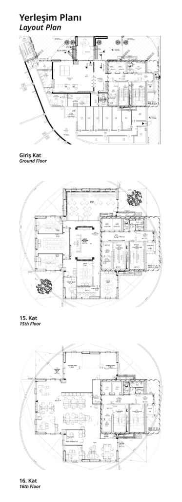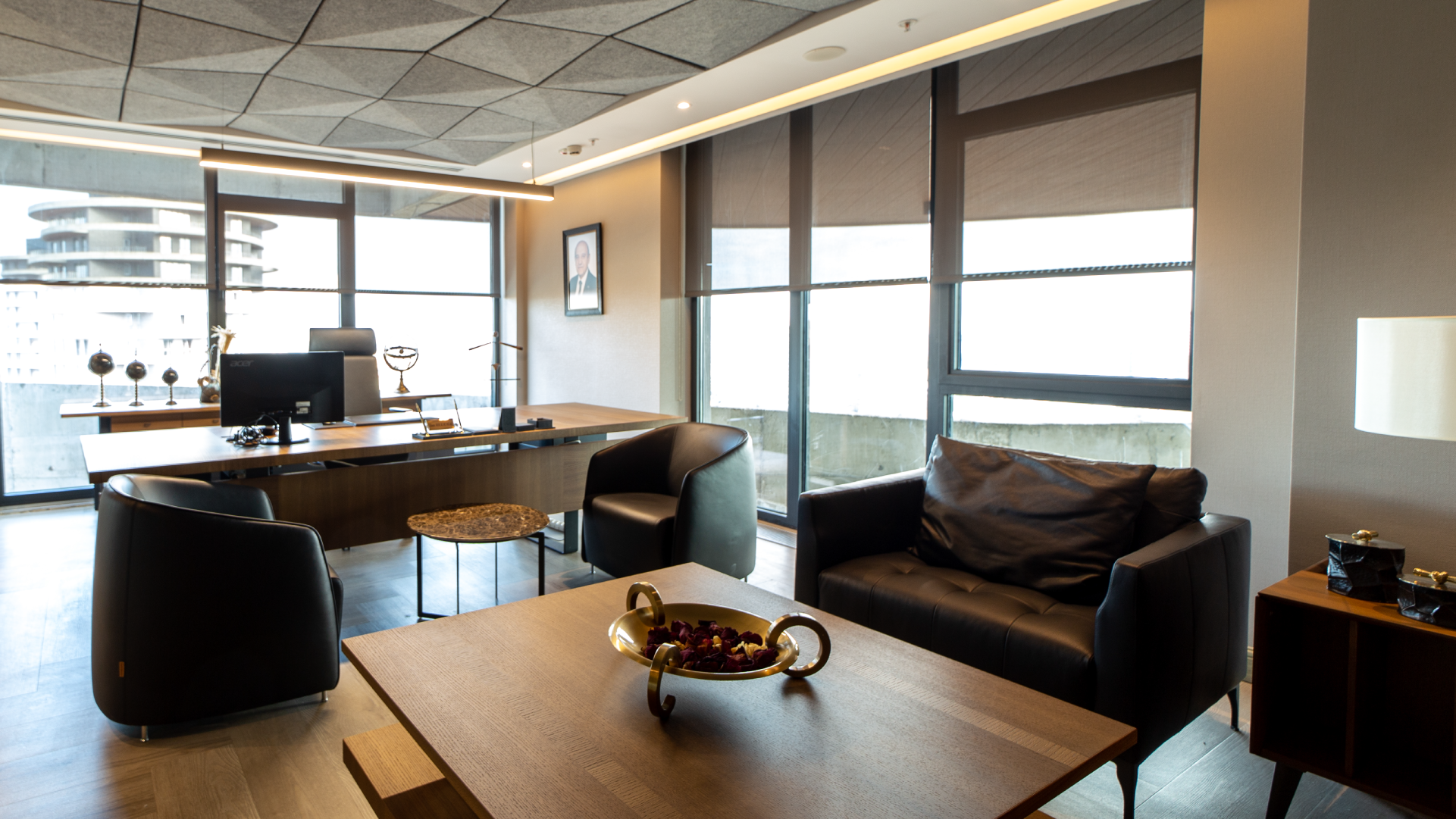 ŞA-RA Group ofisi, şirketin köklü kurumsal yapısını ve çağdaş vizyonunu yansıtan bir tasarım diliyle ele alınmıştır. Mekânın merkezinde yer alan resepsiyon alanı, mermer ve ahşap malzemelerin zarif birlikteliğiyle sıcak bir karşılama atmosferi oluştururken, aydınlatmaların ritmik kurgusu kurumsal kimliğe güç katan bir vurgu yaratır. Ofis planlamasında şeffaflık ve akışkanlık ön planda tutularak, yönetici odalarından toplantı salonlarına, bekleme alanlarından açık çalışma bölümlerine kadar her detay; hem işlevselliği hem de estetik değeri aynı anda taşır. Yeşil dokunuşlarla desteklenen iç mekânlar, sürdürülebilirlik anlayışını hissettiren bir doğallık katarken, modern mobilyalar ve akustik çözümler çalışanlara konforlu bir çalışma deneyimi sağlar.
